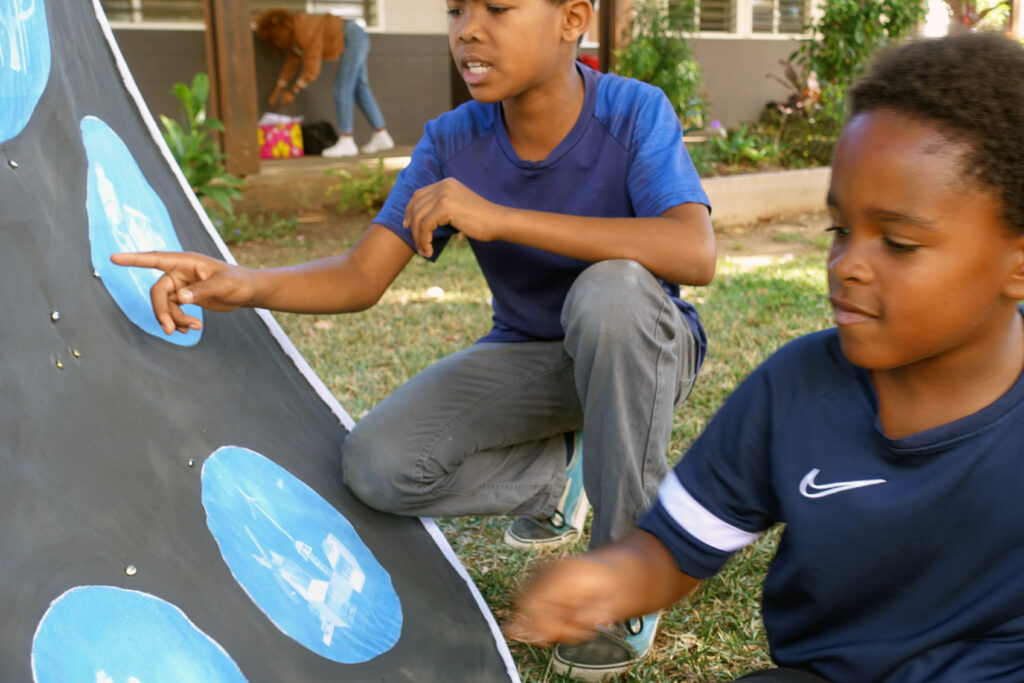 Lors d’ateliers participatifs, nous avons créé avec les enfants de St Paul des unités d’habitations insulaires résistantes aux changements climatiques. Nous leur avons ensuite imaginé un contexte futuriste lié au climat et à la géographie. Ces créations ont été agencées et réunies comme autant d’îles d’un archipel, pour former un territoire imaginaire représenté sous la forme d’une carte interactive comprenant des capsules audio qui, déclenchées par contact, permettent d’écouter les créations sonores réalisées.