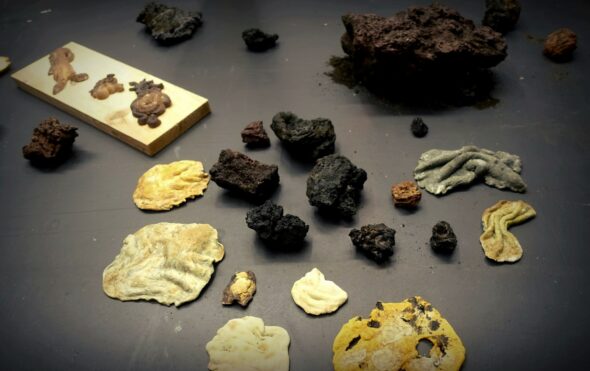 Ce travail culinaire chercher à s’emparer des gestes de transformation où la nourriture rejoue des mouvements géologiques.